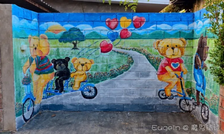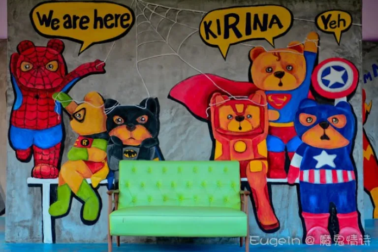 走到哪儿都是小熊的踪影,住宿老板将大量的小熊公仔画在各处,壁画、门口、接客的双条车等等,让人充分置身在小熊主题里。到处都是萌翻的插画涂鸦,唤起了童心未泯的初心。Kirina Retro House看起来其实更像小型渡假村,就算住满客人也不会拥挤吵杂。