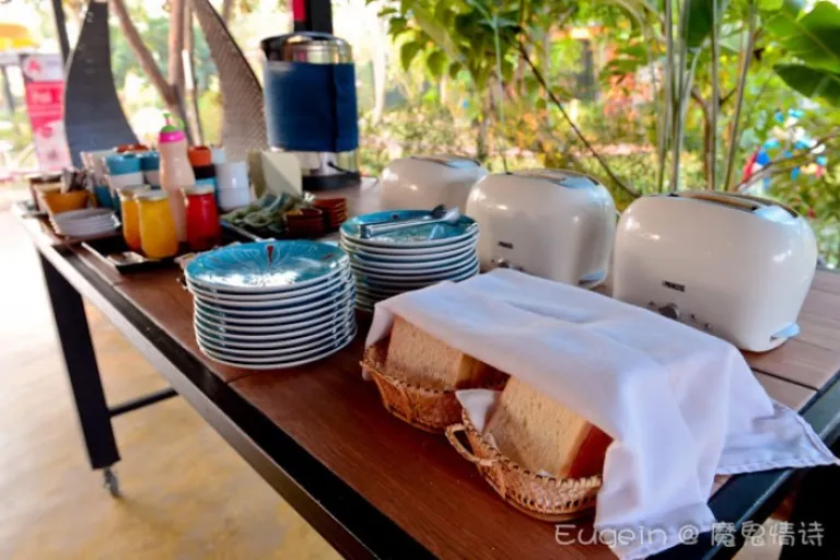面包和饮料是自助区,其余的是a la carte单点方式,跟厨房员工现点现煮。我喜欢这种方式,不浪费同时保证每个住客都能吃到热腾腾的食物。热饮并不单寡,咖啡和茶以外居然还有美禄和泰国人最爱的Ovaltine巧克力麦芽饮。