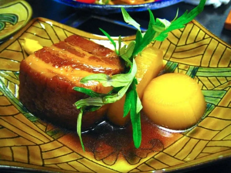 라후테는 관광객과 현지인 모두에게 사랑 받는 오키나와 대표 돼지고기 요리이다. 라후테는 달짝지근한 간장 베이스에 삼겹살을 오래 졸여 만들며 입안에 사르르 녹는 부드러운 육질이 매력이다. 라멘에 고명으로 올라가는 차슈처럼 오키나와 소바에 고명으로도 곁들여 먹거나 밥 반찬 또는 맥주 안주로도 즐길 수 있다..