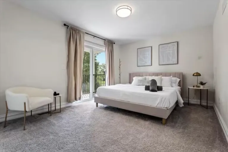 Designed for mid and long-term stays, this two bedroom condo offers a peaceful environment with a cozy patio and backyard garden. The spacious interiors, modern kitchen, and natural light make it a comfortable choice for extended stays. Its location, just one mile from downtown, provides both convenience and serenity.