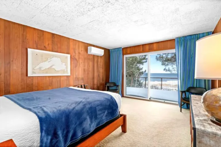 Set right on the sandy shores of Lake Superior in Duluth’s quiet Park Point neighborhood, this welcoming beach Airbnb in Duluth is tailor-made for family getaways. Inside, you’ll find three bedrooms, including a kid-friendly room with twin beds, and a master suite that opens directly onto a deck with unbeatable lake views. The landscaped yard features a picnic area, garden beds, and a fire pit for evening marshmallow roasts. With kayaks, beach access, and peaceful vibes, it’s the perfect mix of outdoor adventure and cozy relaxation.