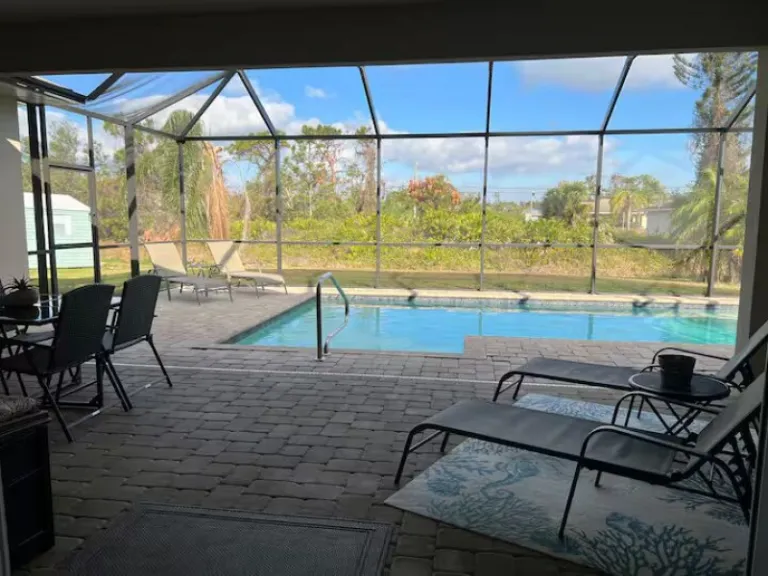 A charming and peaceful vacation rental, Green Bamboo is located in a quiet neighborhood just five miles from Englewood’s top beaches. Featuring three bedrooms, two bathrooms, and bamboo flooring throughout, this home provides a stylish and cozy stay. The outdoor space includes a heated pool, fire pit, BBQ grill, and a comfortable patio area, making it a perfect spot to relax and unwind after a day of exploring.