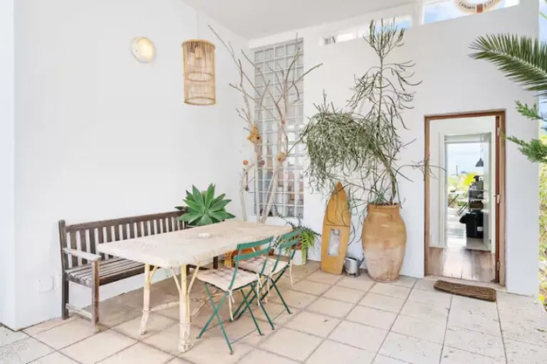 Just fifty meters from Talamanca’s turquoise waters, this relaxed airbnb stay in Ibiza is a gem for families or groups wanting a beach holiday without sacrificing comfort. With ocean views from every level, direct access to the beach via a garden gate, and two private parking spots, it’s ideal for those craving a laid back, salt in hair Ibiza escape. Morning swims, seaside dinners, and quiet walks into the old town are all at your doorstep.