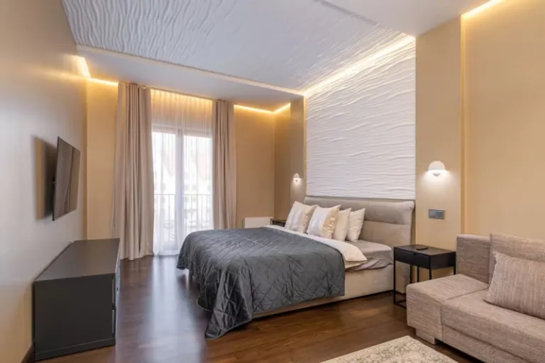 Tucked into Riga’s exclusive Quiet Centre, this spacious and refined airbnb stay in Riga offers elevated living with a touch of indulgence. Two elegant bedrooms and a sofa bed accommodate up to six guests, while the panoramic windows and private terrace invite plenty of natural light. Guests can enjoy a long soak in the luxurious bathtub, stream their favorite shows on the Smart TV, or cook in the fully equipped modern kitchen. With high speed internet and close proximity to premium dining and wellness options, it’s ideal for both business and leisure travelers.