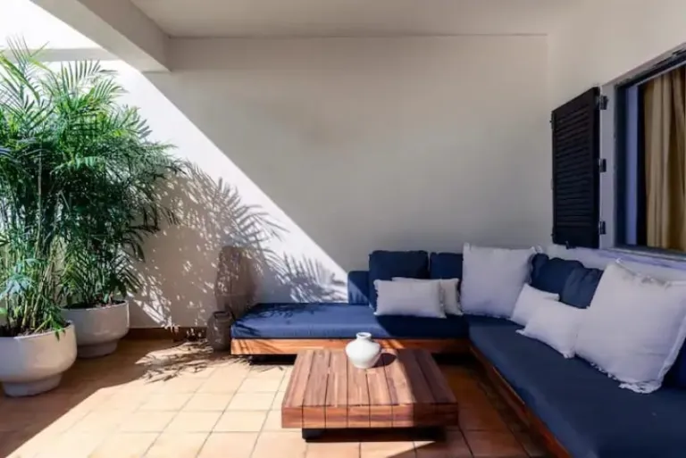 History buffs and culture vultures will love this charming renovated house in Lagos’ historic center. This is one of the Airbnbs in Lagos with stunning views of the harbor and beach, original features, and modern amenities! It’s the perfect blend of old and new. The roof terrace is the highlight, offering panoramic views and a peaceful escape from the city below.