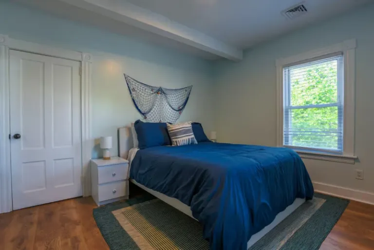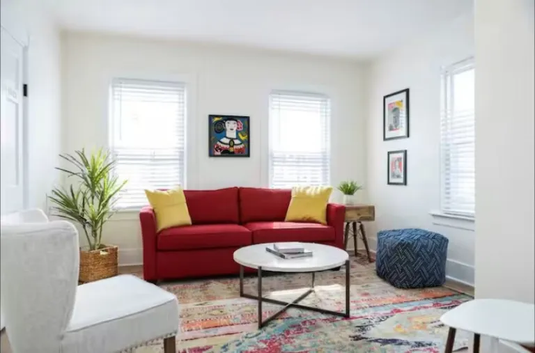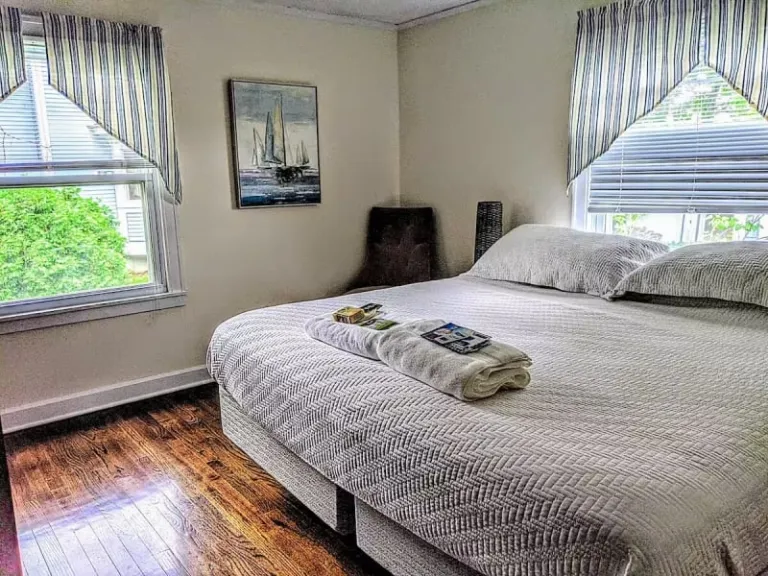Stay in a beautifully renovated two-bedroom apartment on a quiet street in Historic Mystic, just minutes from shops, restaurants, and the waterfront. The space includes two queen-size beds, a private porch, a fully equipped kitchen, and modern amenities. This Airbnbs in Mystic is a perfect choice for families looking for a convenient yet peaceful stay.