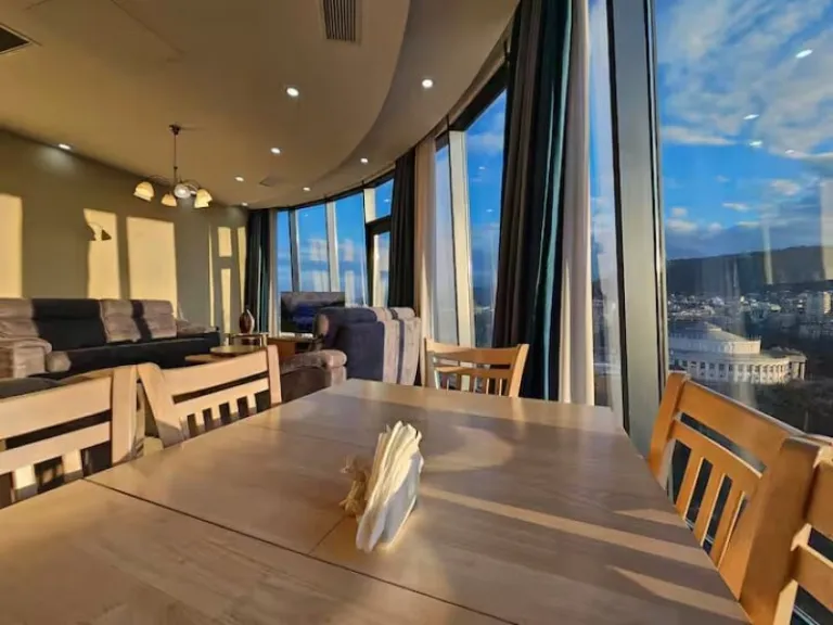 Positioned on the seventeenth floor of a modern high-rise, this two-bedroom apartment offers panoramic views of the Saburtalo district. It’s ideal for digital nomads or couples, with stylish decor, king-size beds, and high-speed Wi-Fi throughout. The interior features a fully equipped kitchen, a bright living area, and a sleek bathroom with contemporary fittings. A balcony gives you a quiet outdoor space to unwind or enjoy a peaceful breakfast.