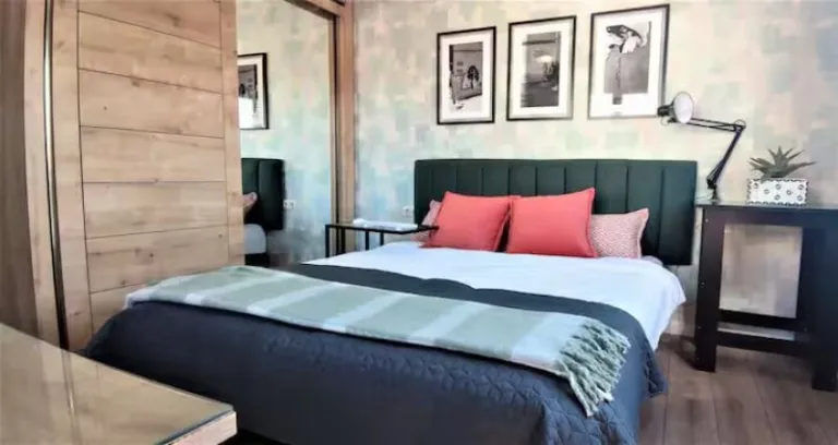 Set in a premium building in the heart of Sololaki, this boutique apartment balances elegance and function. Two spacious bedrooms, each with private bathrooms, offer privacy for families or larger groups. This is one of the airbnbs in Tbilisi with a well-equipped kitchen and roomy balcony with scenic views enhance the sense of relaxed living. Located in a quiet corner of the historic district, you’re still within walking distance of key landmarks, restaurants, and charming side streets that reveal Tbilisi’s character.