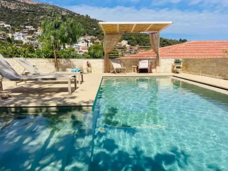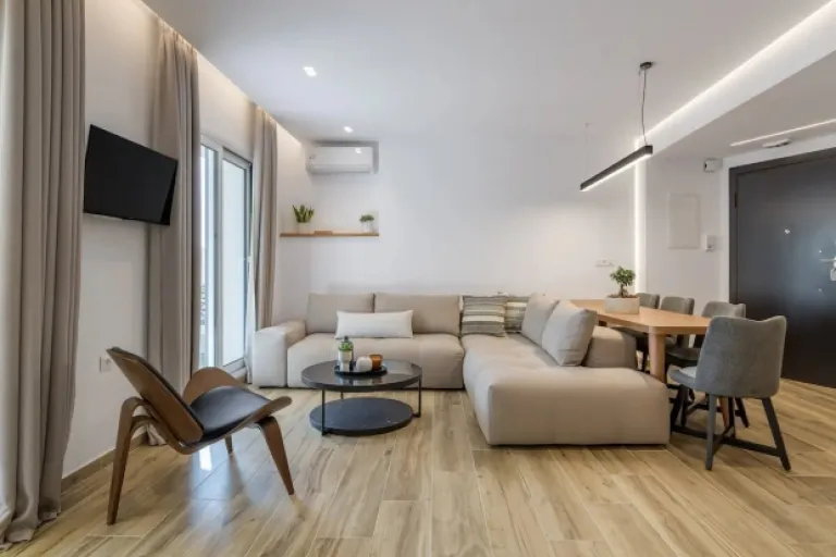 This modern apartment boasts a private heated plunge pool on its balcony – perfect for cooling off after a day of sightseeing. Located in the heart of the city, it offers easy access to shops, restaurants, and the Acropolis. Two bedrooms, two bathrooms, and a fully equipped kitchen make it a comfortable home base for your Athenian odyssey.