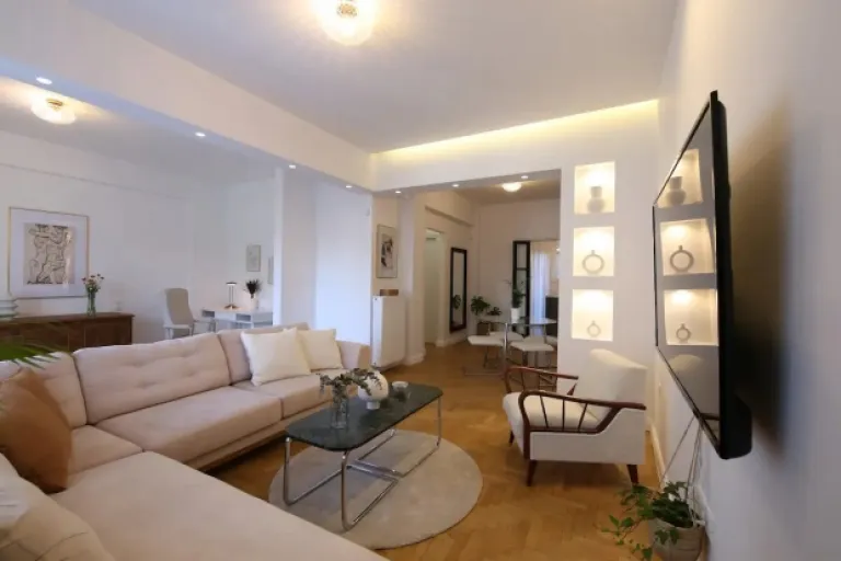 Step back in time at this fully renovated 1936 apartment. Art Deco details blend with modern amenities, offering a spacious and airy atmosphere. Relax on the charming balcony or unwind in the tranquil backyard. This three-bedroom apartment with two bathrooms is perfect for families seeking a unique and comfortable stay close to the Acropolis.