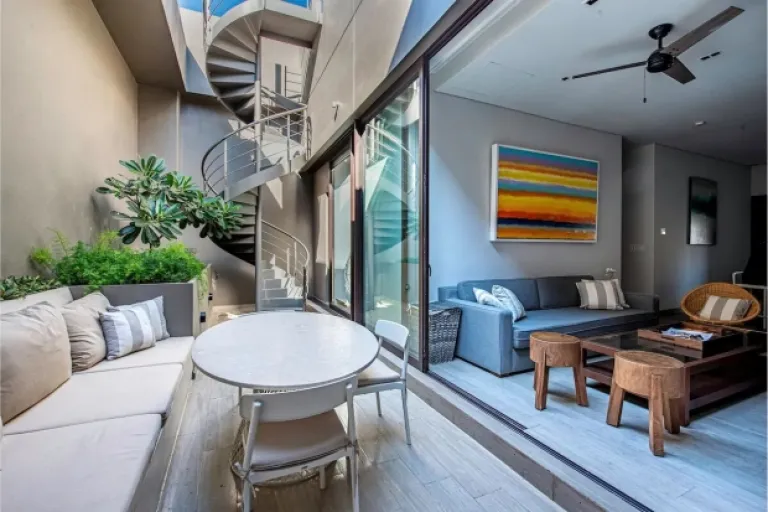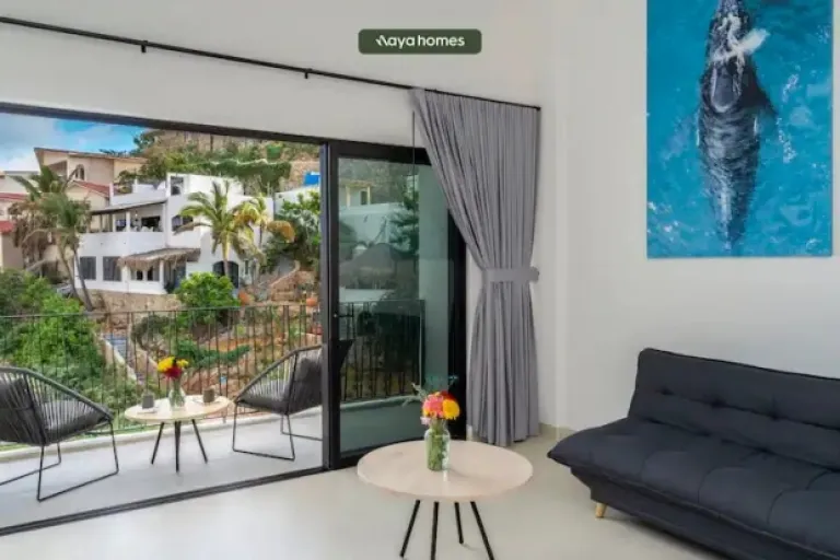 This brand-new one-bedroom condo is perfect for smaller families. It features a luxurious king-size bed and a sofa bed for additional sleeping space, two private terraces with gorgeous views, and air conditioning throughout. The location is unbeatable, with easy access to the beach, nightlife, and a variety of restaurants. Despite its central location, this condo offers a peaceful retreat from the city’s hustle and bustle.
