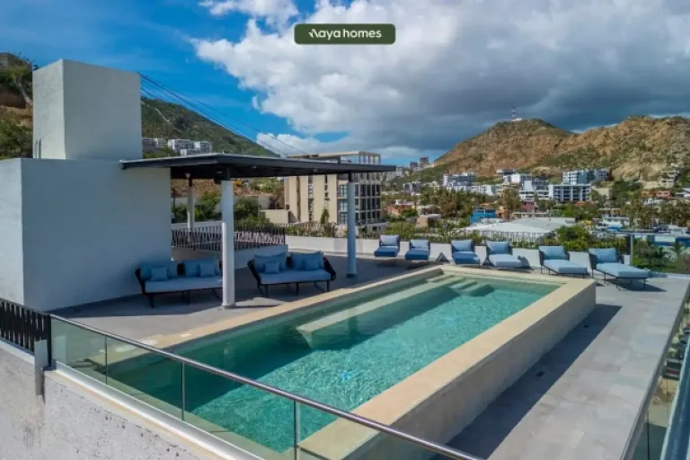This modern condo is your home base for Cabo adventures. Explore the docks, battle a marlin, then unwind in style at Casa Mar. The condo boasts a sleek kitchen, comfy bedrooms, and a living room that doubles as extra sleeping space. But the true showstopper? The private rooftop terrace with a jacuzzi and loungers. Soak up the Baja sun and endless skies – pure bliss!