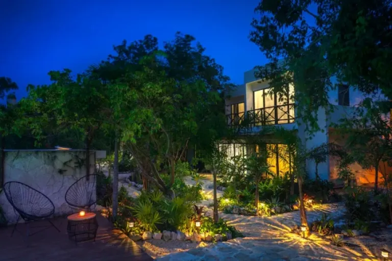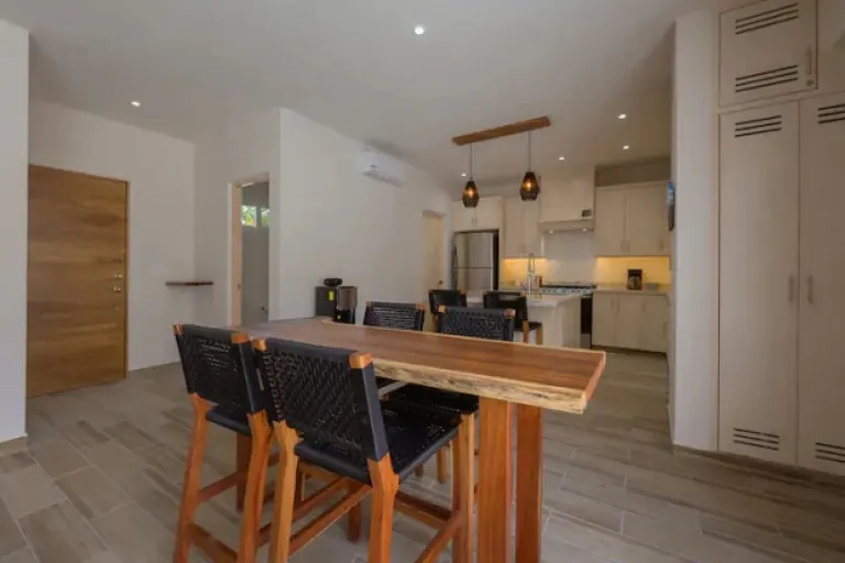 Want to experience the magic of the Mayan jungle? This private apartment offers space for families, with a distance-friendly layout for extra comfort. Just a short drive from stunning Akumal Beach, the property features a cenote-shaped pool, BBQ grills, sun loungers, and strong wifi for those Insta-worthy pics. The fully equipped kitchen allows for easy meals, and the private terrace is perfect for morning coffee surrounded by nature. Look out for monkeys, coatis, and all sorts of cool wildlife!