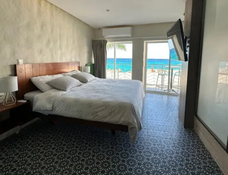Calling all nature lovers! This is one of the Airbnbs in Cozumel that boasts stunning ocean views and a large terrace, perfect for catching epic sunsets. There’s a private bedroom, a living area with a kitchen and dining room, and balconies throughout for fresh air and views. The building even has a pool for splashing around. This Airbnb is ideal for couples or small families (with an extra charge for a third person).