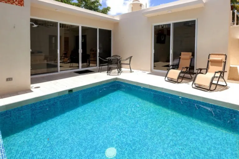 Looking for a tropical escape with a pool? This two-bedroom house is perfect for families. Just steps from the beach, restaurants, and attractions, it offers a private pool, modern amenities, and a prime location. There are two and a half bathrooms, AC in all rooms, wifi, hot water, and even smart TVs! This place is ideal for creating unforgettable family memories.