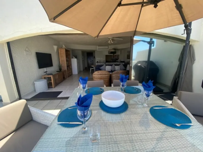 An extremely private apartment that guarantees comfort and peace to families. It is located on the lifeguarded Bronze Beach in Umhlanga. The magnificent sea views are bound to make guests experience tranquility. You can also go to the Gateway Shopping centre through a 5 minute drive away. This Airbnb is also one of the few front apartments at Bermudas where a braai (bbq) is allowed on the patio.