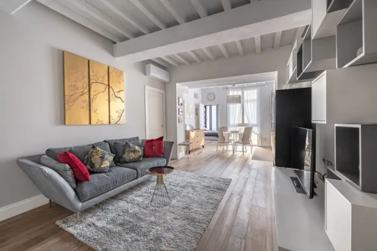 This apartment feels like your own home away from home, with two bedrooms, a big living room, and even a laundry room if you’re staying for a while. Plus, it’s right in the center of Florence so you can walk everywhere. Imagine stepping out the door and being surrounded by the city – pretty sweet, right?