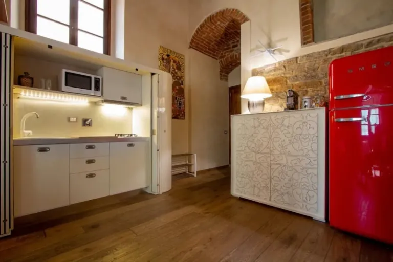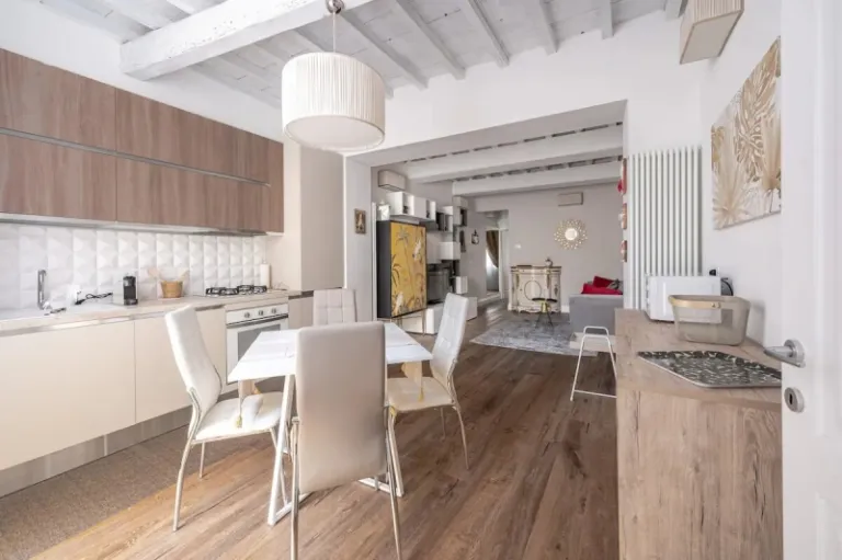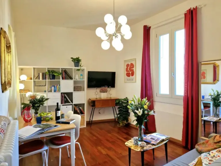 This house is perfect for families who want some privacy. It has two big bedrooms and a modern kitchen. There’s also a balcony overlooking a garden, which is perfect for escaping the summer heat with a good book It’s a peaceful spot in the middle of the city. Plus, getting around Florence is easy with the train station and city center nearby.