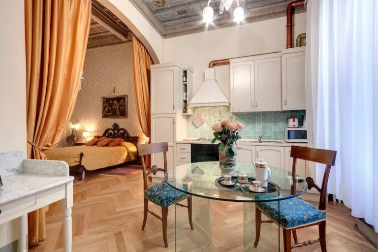 This apartment is close to all the must-see sights, including Michelangelo’s David. It has three bedrooms, three bathrooms, and even a terrace with garden views. The coolest part? This flat is decorated with a mix of art from all over the world, so it’s like living in a mini-museum!
