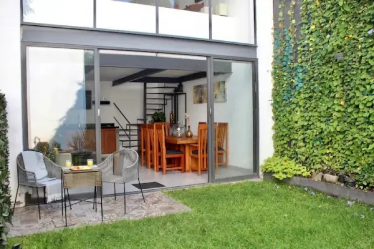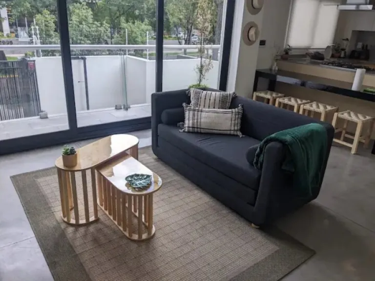 This stylish new loft is perfect for families who want a modern space with a touch of nature. The loft has a private garden, perfect for relaxing after a day of exploring. With a bedroom upstairs and a sleeper sofa downstairs, it can comfortably accommodate up to four people. This is a great choice for families who want a quiet retreat close to the Chapaltepec district.