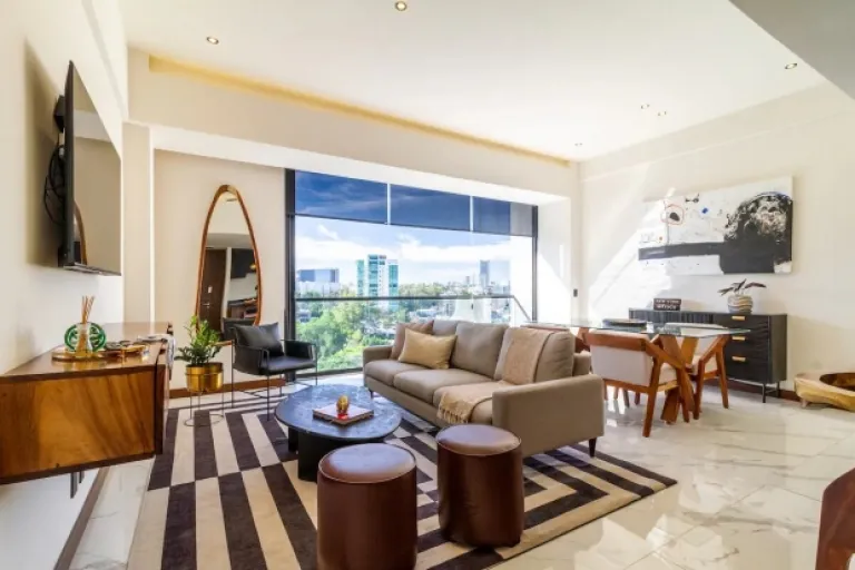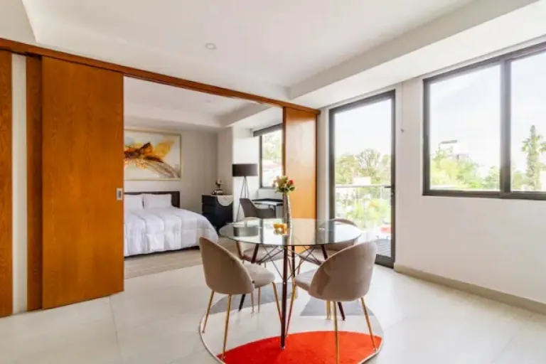 This is one of the Airbnbs in Guadalajara located in a prime area! It is just minutes from the business district and restaurant zone of providence. It boasts two bedrooms and two bathrooms, making it comfortable for families of four. This is a great choice for families who want a luxurious stay and to be close to the action.
