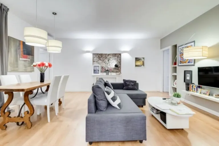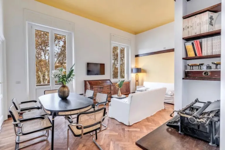 Overlooking the Tiber River, this bright and spacious 100 sqm Airbnb in Trastevere is perfect for families and groups. The elegant building is steps from Piazza Trilussa. The apartment features a spacious living room with an open kitchen, three bedrooms, and two bathrooms. Guests can enjoy breathtaking views and a vibrant neighborhood atmosphere.