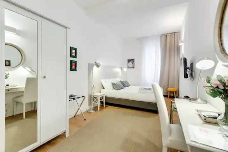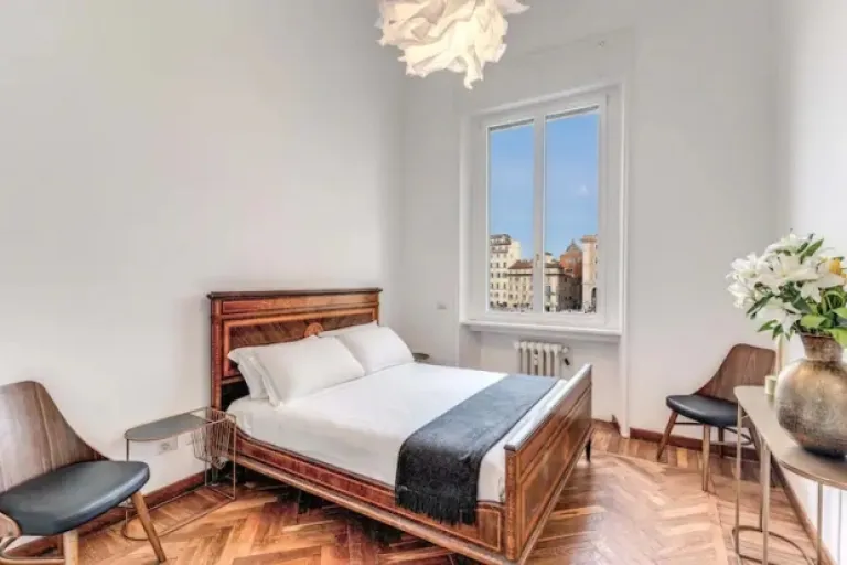 This exclusive Airbnb in Rome on Via del Corso offers a refined environment with every comfort for an unforgettable stay. Firstly, two large bedrooms overlook Via del Corso and Piazza del Popolo, each with double beds, flat-screen TVs, and ample storage.