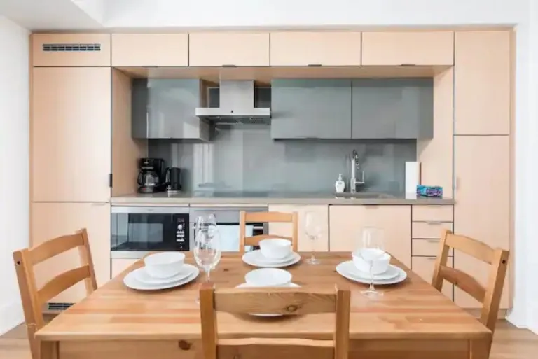Want to experience the finer things in life? This luxury condo in Toronto’s posh Yorkville neighborhood might be for you. It’s beautifully furnished and offers stunning city views. Here’s the breakdown: there’s a gym on-site (perfect for burning off all that vacation food!), a SmartTV for movie nights, a comfy queen bed in the bedroom, a living room with a twin-sized sofa bed for extra sleeping space, and a fully equipped kitchen with a fancy microwave that can grill and connect!