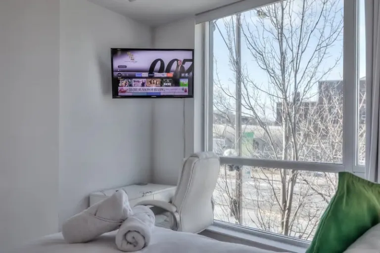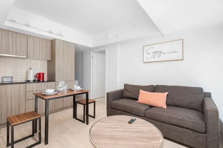 Calling all thrill-seekers! This condo puts you right in the middle of Toronto’s entertainment district. CN Tower, Ripley’s Aquarium, Rogers Centre – you name it, it’s practically on your doorstep! Catch a movie, explore the city, then unwind in this newly renovated suite. It’s got a comfy queen bed, a massive 55-inch Smart TV for movie nights, and even a balcony for enjoying the city lights. Plus, the kitchen is fully equipped if you want to whip up a meal, and there’s complimentary coffee and tea to keep you going.