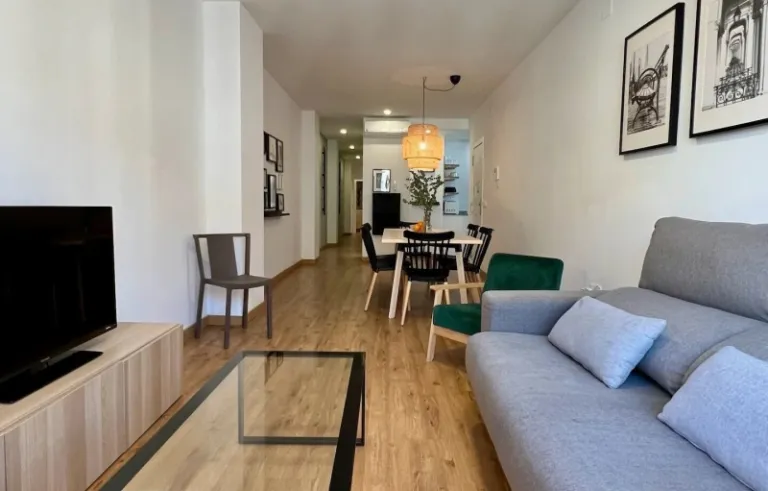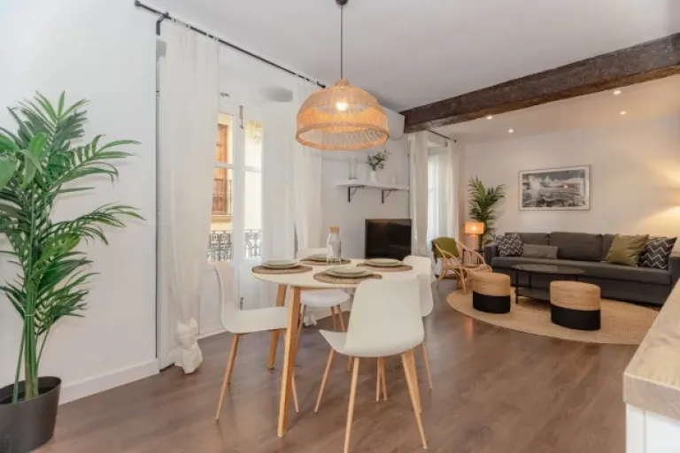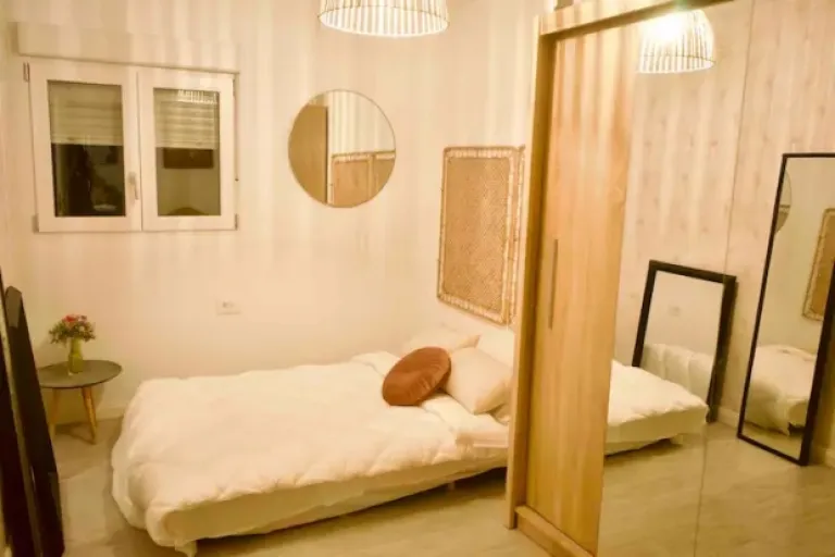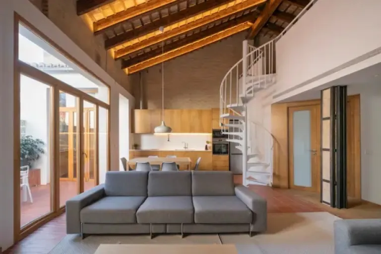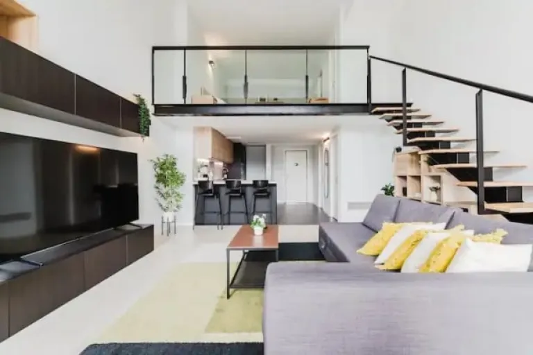 Discover the ideal family-friendly Airbnb in Valencia, Spain. This cosy loft is perfect for groups of up to six. It has two bathrooms, a comfortable double bed, and sofa beds. The fully equipped kitchen and minimalist decor with big windows create a warm atmosphere.