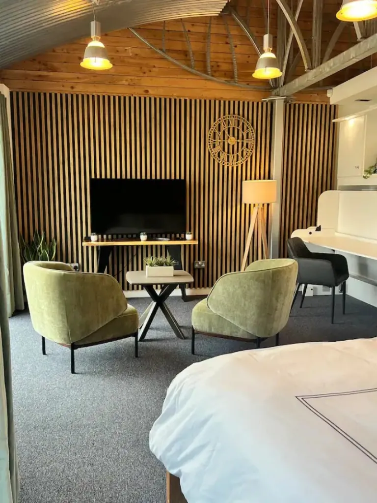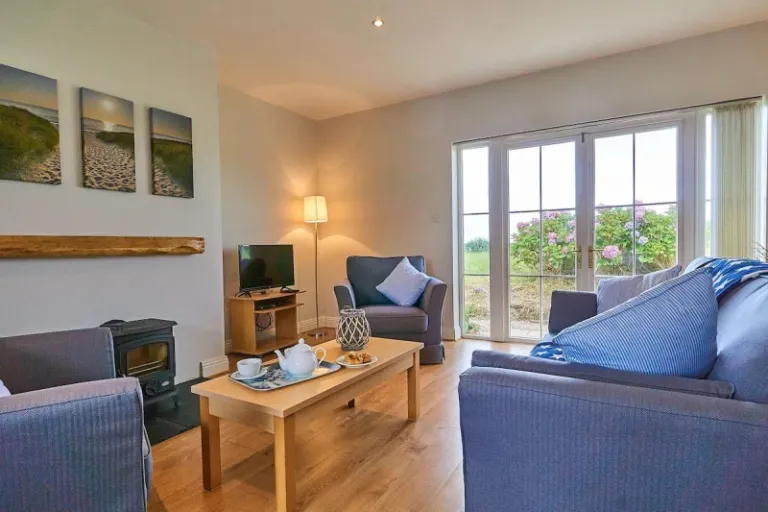 Nestled on a quiet country lane just outside Wexford Town, this modern guest lodge offers the best of both worlds – peaceful countryside vibes and easy access to town amenities. It’s close to shops, restaurants, the Min Ryan People’s Park, Johnstown Castle, and the Rosslare ferry. Ideal for families with older kids, it features a comfortable open-plan layout with a kitchen/dining area, a separate bedroom/living room, and a bathroom. The bedroom has a king-size bed with a sofa bed/baby cot option, and there’s a sunny patio for relaxing outdoors.