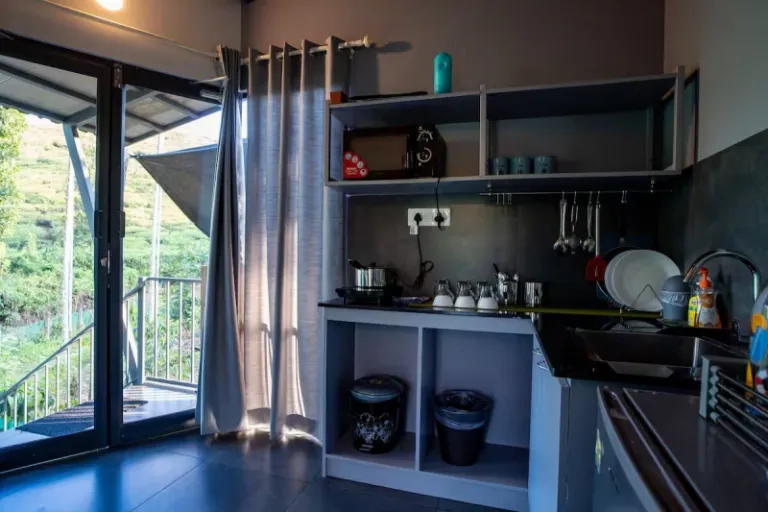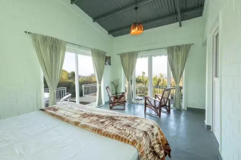 Built with sustainable materials and set within a coffee and spice plantation, FARMCabin offers a charming, eco-conscious stay ideal for solo travelers or couples. You’ll wake up to views of a tea garden and the sound of a seasonal waterfall-fed stream. Inside, enjoy minimalist interiors with a bedroom, compact kitchenette, living area with bean bags, and a scenic loft-net balcony. Outside, a stream-side dining area and plantation pathways add to the immersive experience. Optional home-cooked Kerala meals are available from the lovely neighbor aunty.