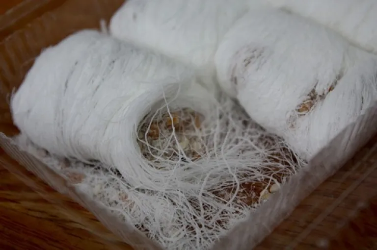 Dragon beard is a sticky and delicious snack comprising a sweet peanut filling wrapped in threaded sugar.
