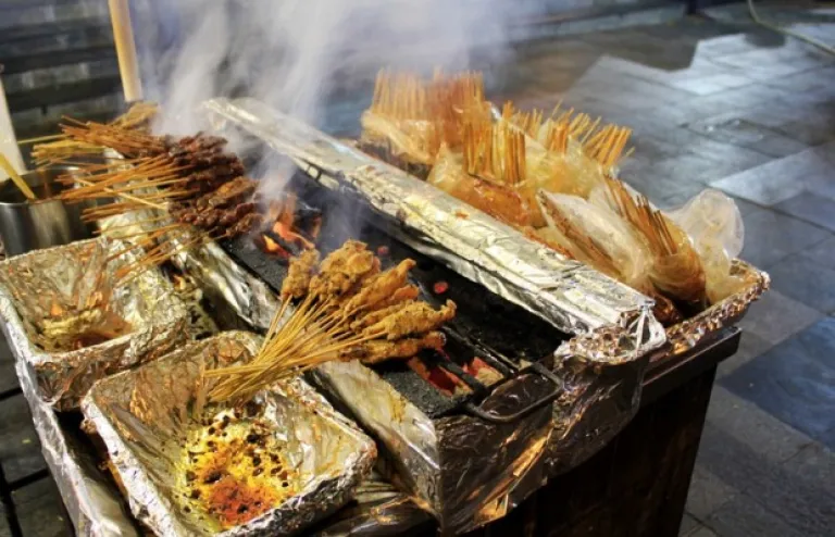 Sticks of meat grilled right in front of you.