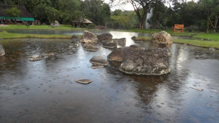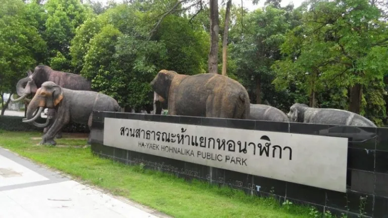 Ha-Yaek Hohnalika Public Park is a fairly large and well-maintained public space in the heart of Lampang town. Elephant statues stand at the entrance, showing the area’s long connections with the nation’s national animal. Within the park there are open grassy areas, trees that offer welcome shade in the heat of the day, and pretty flowers. It’s a nice place to relax and for kids to run and play. The park also has indoor and outdoor sports facilities.