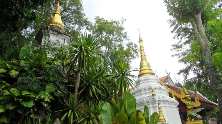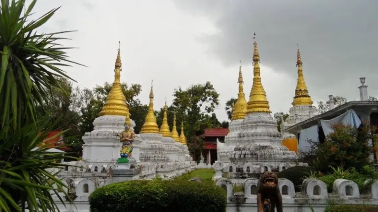 Lampang’s Wat Chedi Sao has 20 white and gold chedis arranged in a uniform fashion. Locals believe that making merit at the site, which is thought to be around one thousand years old, will bring good luck. The complex shows a mixture of Burmese and Lanna designs and there’s a statue of the Lord Buddha in the Chiang-Saen style within the small temple.