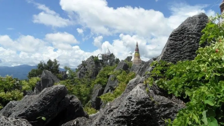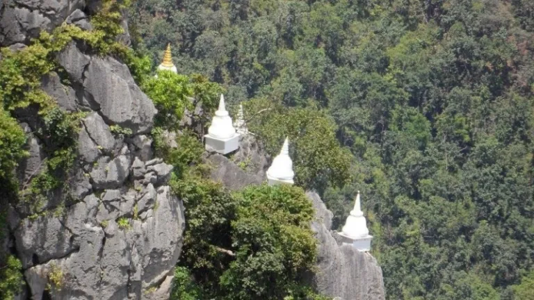 Wat Chalermprakiat is one of Lampang Province’s most stunning temples. You’ll need to hike a short way through forested areas and uphill to reach the main part of the temple, but the effort is more than worth it. Steps and steep paths lead some 800 metres up the mountain; take plenty of water! Many white, gold, and multi-coloured pagodas and chedis balance on the slate-gray rocks high above the blanket of greenery below and the views are incredible. The spectacular attraction was built over several years from 2004, in honour of King Rama IV’s 200th anniversary.