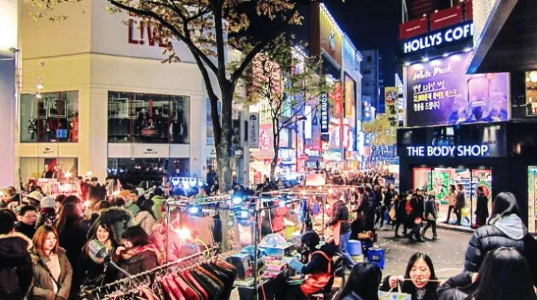 This bustling neighbourhood is continuously packed with people at all hours of the day looking to enjoy some of the best shopping, street food, and nightlife in all of Korea.