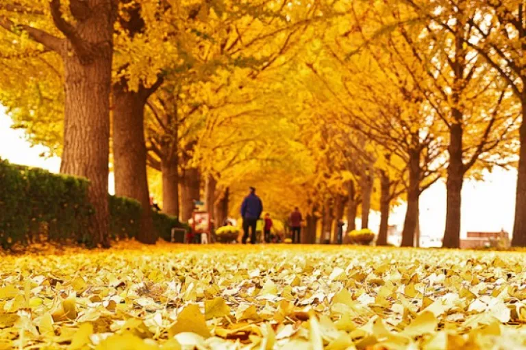 There are streets covered with ginkgo leaves, like the ,