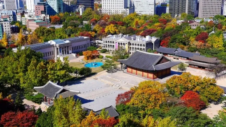 You can witness the Deoksogung Palace in Seoul be engulfed with red, green, and golden trees,