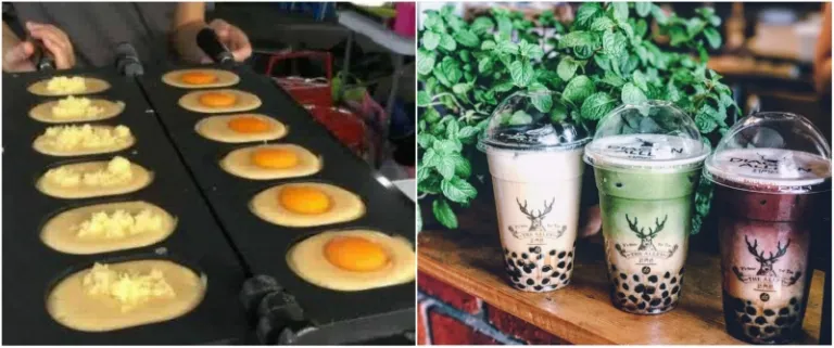 For other Instagram-worthy treats, why not try getting an egg-bread, which features a molten, runny-egg and your choice of topping, encased in fluffy batter. If you’re a cheese-lover, opt for the cream cheese egg-bread which gives way into creamy, cheesy and eggy goodness right from the very first bite (careful, it’s hot!). For ice-cold thirst-quenchers, grab milky bubble teas or bottles of gorgeous, dreamy layered drinks which are aptly named after sunsets and the northern lights!