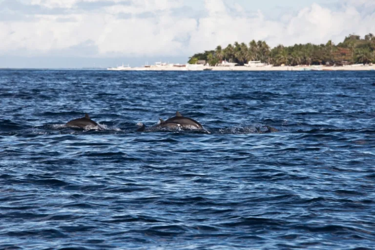 Usually, island hopping starts at , but can also arrange it for you. The first stop is a spot where bancas gather for dolphin watching. It is best to go as early as possible to have a higher chance of seeing the dolphins as the water is still cold.
