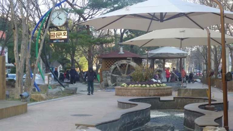 Tall bald cypress and gingko trees loom over the footpaths, bathing the area in swathes of emerald in summer and vermillion and gold in autumn. The entire area is a visual feast in itself, and it’s plain to see why it’s considered one of the 12 most famous sightseeing spots in Daejeon. If you’re feeling up for it, you could take a hike throughout the entire park and enjoy some of the quirky features around such as a bare-footed walking path, suspension bridge or an ecology pond.