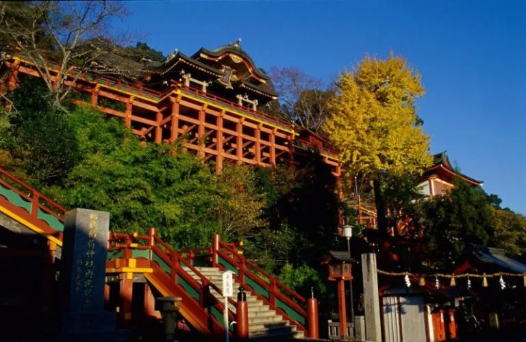 Rise early the next morning and hit the road to Yutoku Inari Shrine! Founded in 1687, this shrine is one of Japan’s largest Inari shrines. Start your journey at the base of the hill, where a traditional Japanese garden lies amongst the azaleas. At the entrance of the shrine, towering wooden beams stand tall at 18m and hold up the Main Hall, which makes for a striking picture. There are several smaller shrines in the area as well, so be sure to look around!