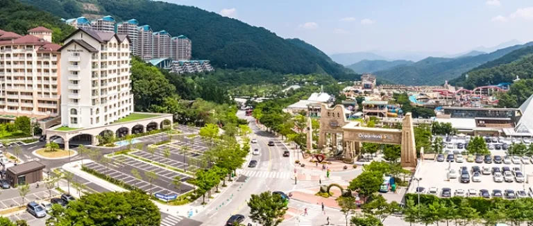 Located 700 metres above sea level, Yongpyong Resort is at the eastern edge of Asia. The resort is surrounded by hills, and during the colder seasons, ski slopes! On its 4,300-acre space, there is a 45-hole golf course, 28 ski slopes and many other leisure facilities.