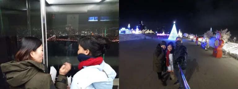 After dinner at the food alley, Amy brought us to the ’s observatory to see the stunning bird’s eye view of the Han River and Seoul City at night. Then, we strolled around the Han River to cap off the day.