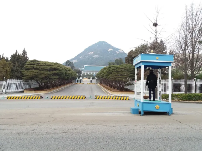 From the , we walked towards , a.k.a. the Blue House, the official residence of the president. When we went there, strict security measures were implemented around the area as demonstrations against the president were still ongoing.