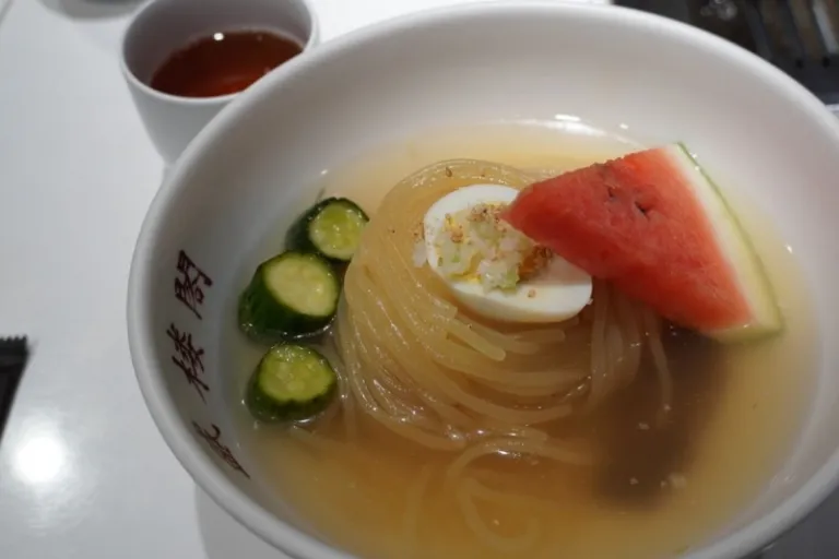 We also tried morioka reimen, a cold noodle dish that originated from Korean immigrants in the area and has since become a local favourite. The broth is icy, light, and slightly spicy, served with chewy noodles, kimchi, and seasonal fruit like watermelon or pear.