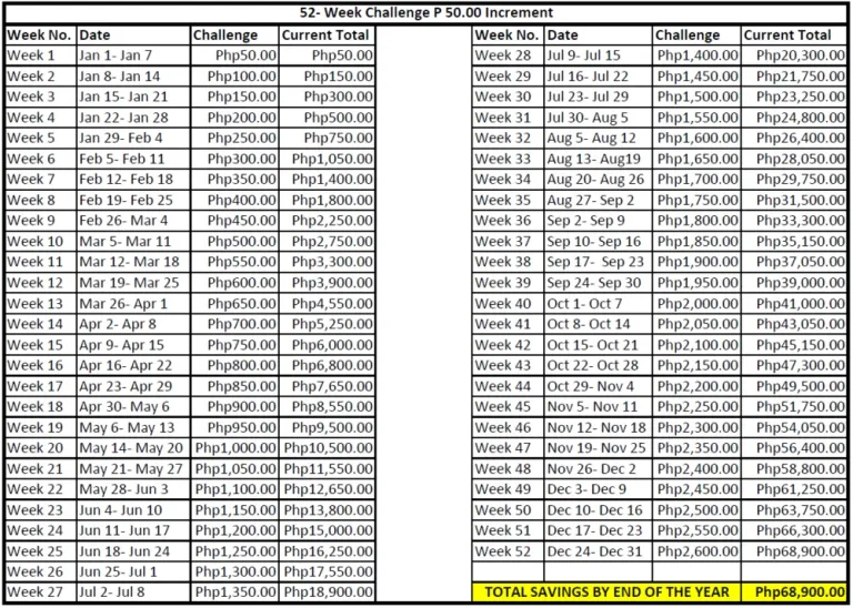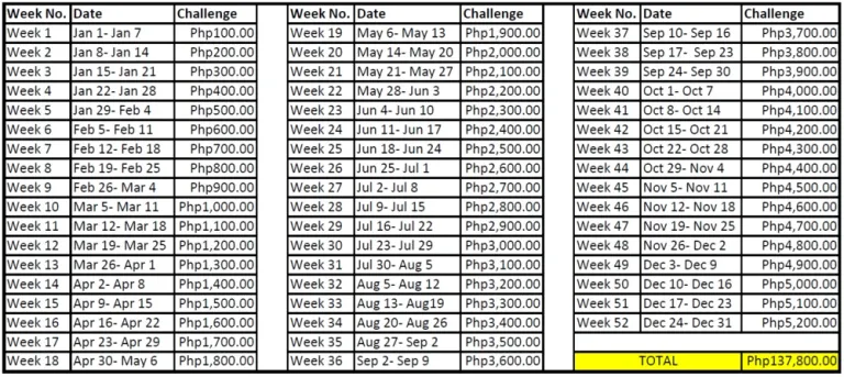 It is so satisfying to see your money grow from the first week of the challenge until the last. It is also rewarding to know that instead of unconsciously spending your spare on insignificant things — things that will not be valuable in the next five years — you get to use it for the possessions that really matter.