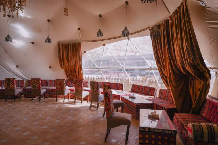 This is a contemporary-style room in Wadi Rum that’s equipped with modern amenities including air-conditioning and indoor fireplace. The indoors are quite simple and comfy here, perfect for couples to enjoy a cosy and quality time. In fact, you can even see the sky and stars from your bed here. Moreover, couples can enjoy Ski-in/out service as well here.